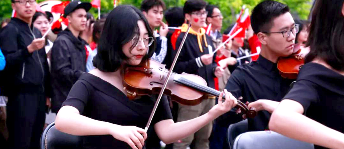 百年五四前夕,中國(guó)農(nóng)業(yè)大學(xué)千余名師生校友齊聚東校區(qū)奧運(yùn)場(chǎng)館前,高唱《我們都是追夢(mèng)人》《我和我的祖國(guó)》《金色的希望》三首歌曲,以一場(chǎng)熱情、深情的青春快閃,向青春致敬,為祖國(guó)獻(xiàn)禮。